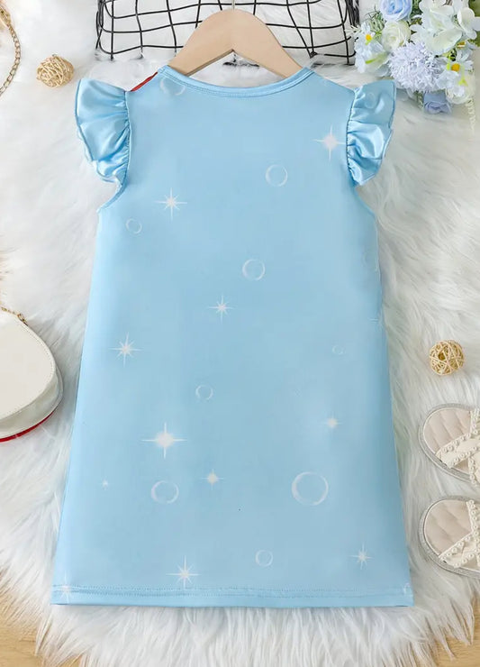 Girls Round Neck Cartoon Unicorn Nightgown