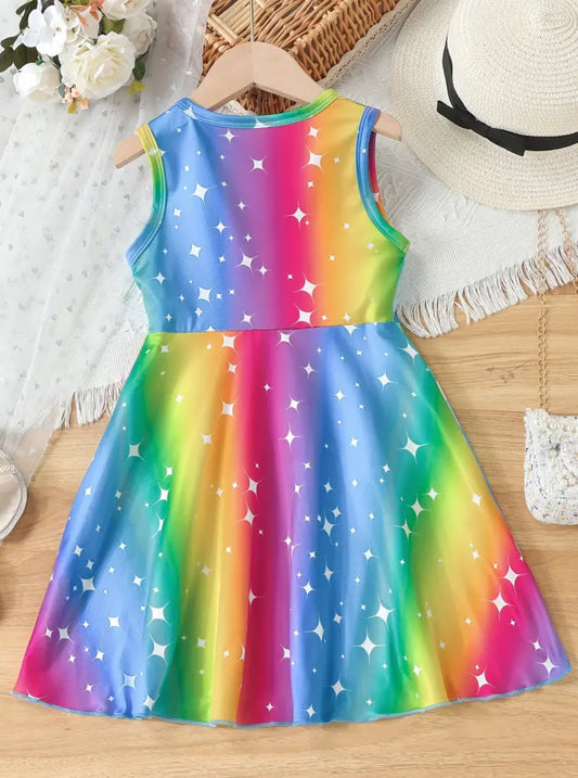 Colorful Unicorn Print Sundress For Girls