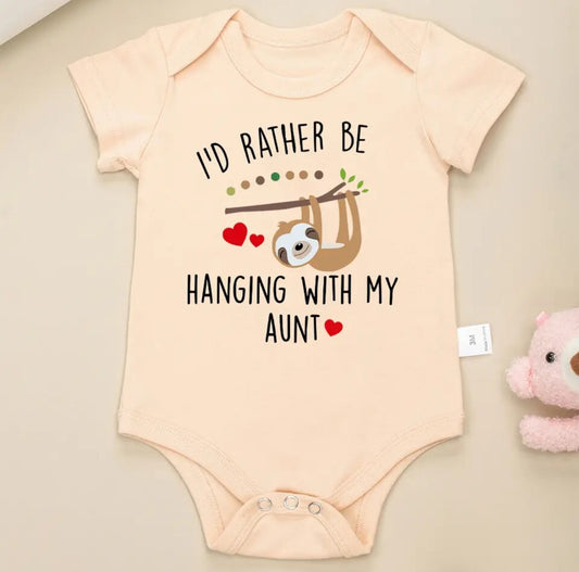 Monos divertidos para recién nacidos con la frase “Prefiero estar con mi tía”