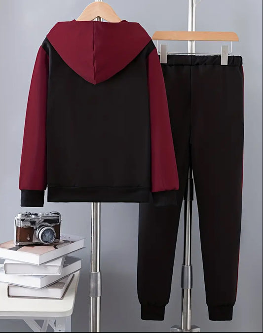 Conjunto de 2 piezas de sudadera con capucha y pantalón deportivo con cremallera para niño - Casual