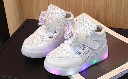 Adorables zapatillas de skate con luces LED y lazo de lentejuelas 🎀