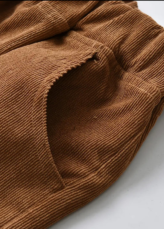 Pantalones casuales de pana para niños con cintura elástica y bolsillos