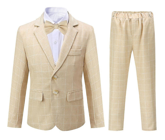 Traje formal para niños, color caqui, 3 piezas, abrigo, chaleco y pantalón