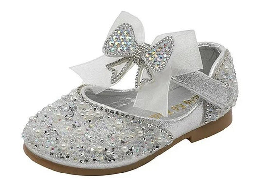 Zapatos de princesa de cuero con diamantes de imitación y diseño de mariposas y besos de cristal para niñas