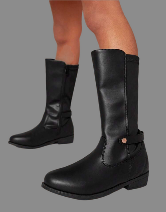 Botas de montar negras hasta la rodilla con parte trasera elástica y cremallera lateral “Noir & Classy”