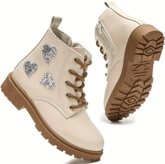 Botas de caña media con corazón “Sequin Sparkle”, piel sintética con cierre de cremallera y forro de tela