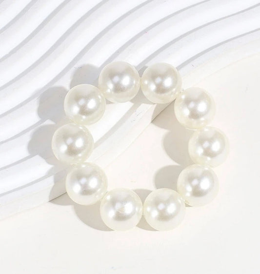 1 pieza de banda para el cabello con perlas sintéticas blancas | Coletero de estilo sofisticado