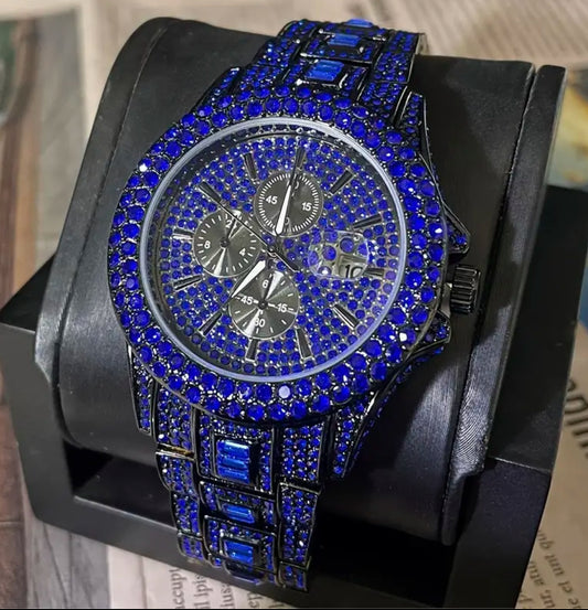 Reloj de cuarzo con diamantes “Luxury Rainbows”: estilo gótico callejero de hip hop