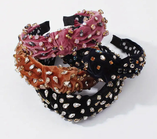 Accesorio para el cabello con joyas, 1 diadema acolchada de terciopelo elegante, nudo ancho