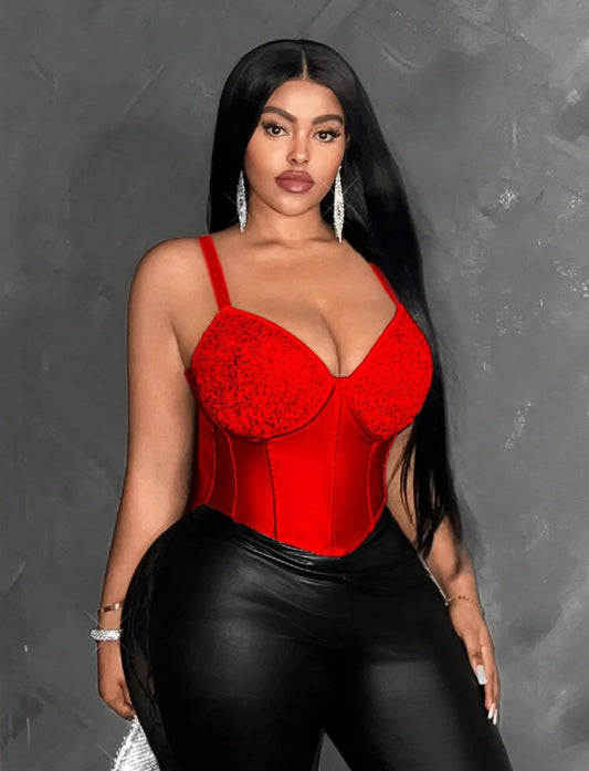 Camisola elegante con tirantes de lentejuelas y corte ajustado en talla grande