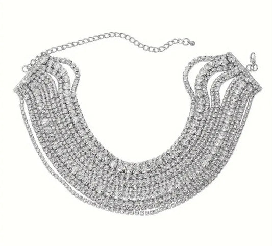 Gargantilla vintage elegante con múltiples capas de piedras preciosas y estilo bohemio brillante