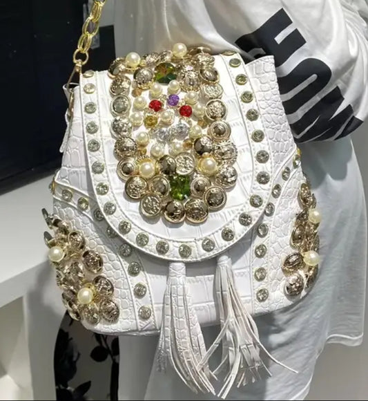 Bolso de mano lujoso para mujer con adornos de diamantes de imitación y correa de hombro desmontable | Mochila