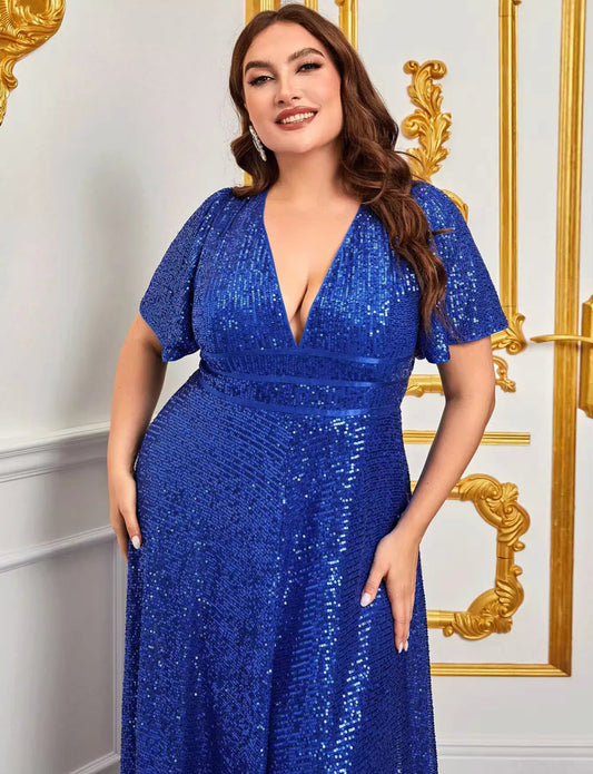 Vestido elegante de moda con lentejuelas azules “Elouise”, talla 0XL-5L