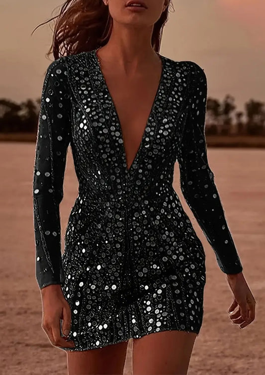 Vestido de lentejuelas de manga larga y escote en V profundo “Beautiful Light”
