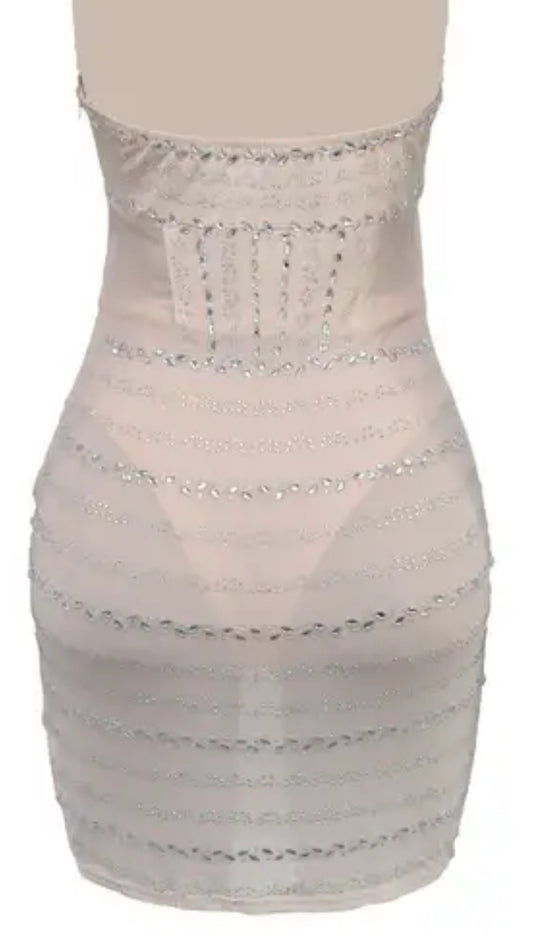 Vestido mini ajustado de noche con espalda descubierta y purpurina de diamantes