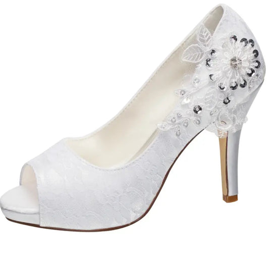 Zapatos de novia con plataforma y flores de pedrería “Lace & Diamonds”
