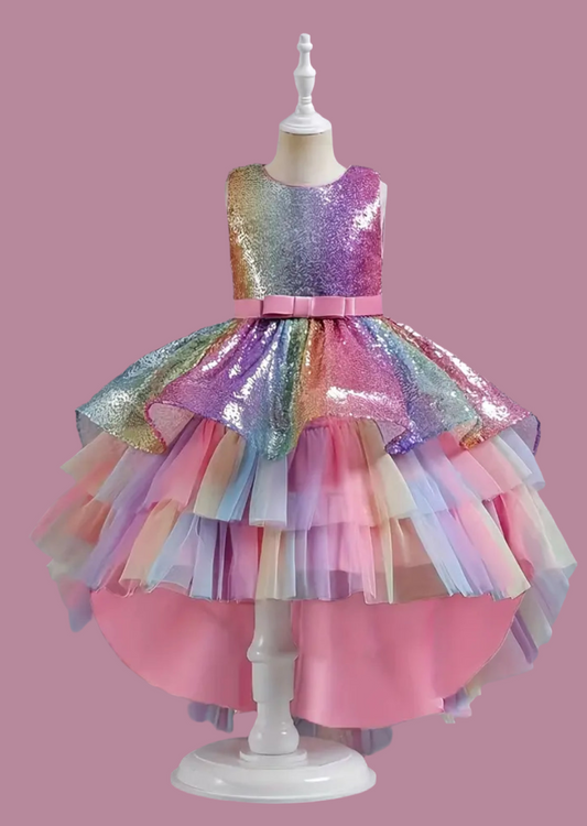 Vestido con cola y tutú de malla de colores “Lentejuelas y arcoíris”