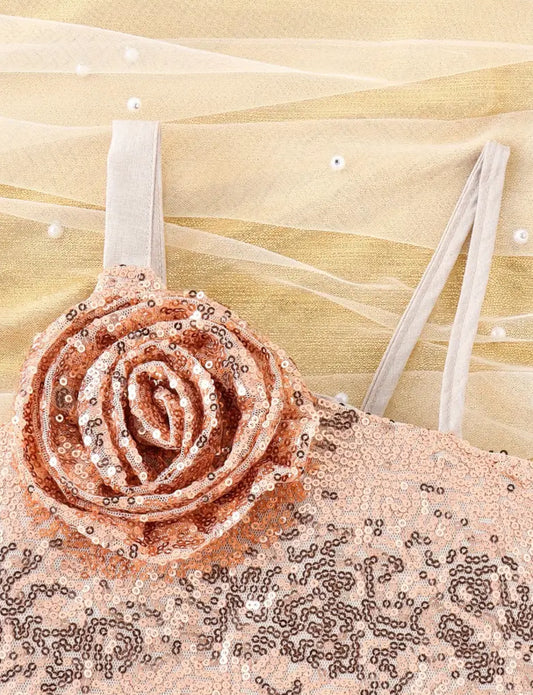 Camisola y pantalones cortos con decoración “Rosa con lentejuelas brillantes” 🌸