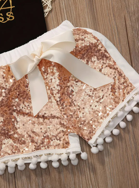 Conjunto de 2 piezas de camiseta sin mangas y pantalones cortos con lentejuelas "Princesa del cumpleaños" para niñas