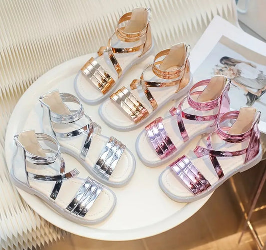 Sandalias de punta abierta con cremallera trasera para niñas “Shine”