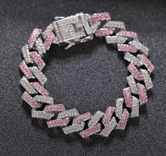 1 pieza, collar o pulsera de cadena cubana con diamantes de imitación y aceite goteante de colores
