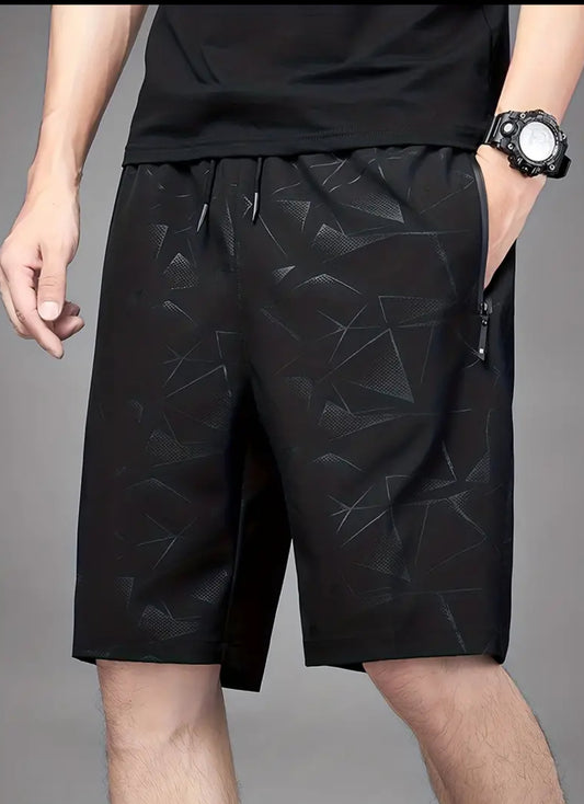 Pantalones cortos casuales con estampado geométrico ligeramente elástico para hombre
