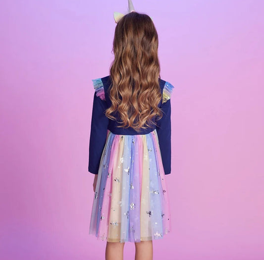 “Unicorn Girls Dress” Cotton Candy Colors Mesh Dress
