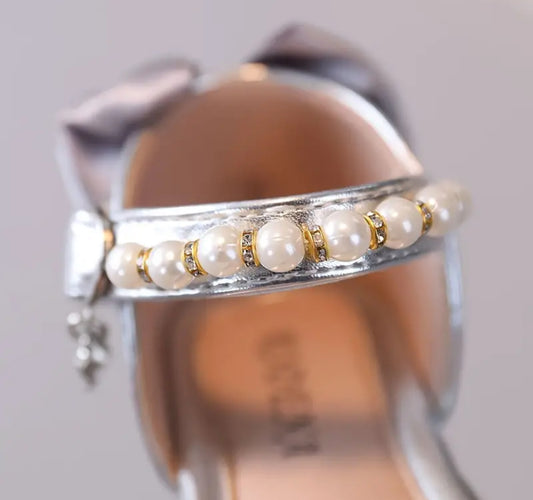 “Cute Bow & Pearls” Sequins Princess Flat Heels