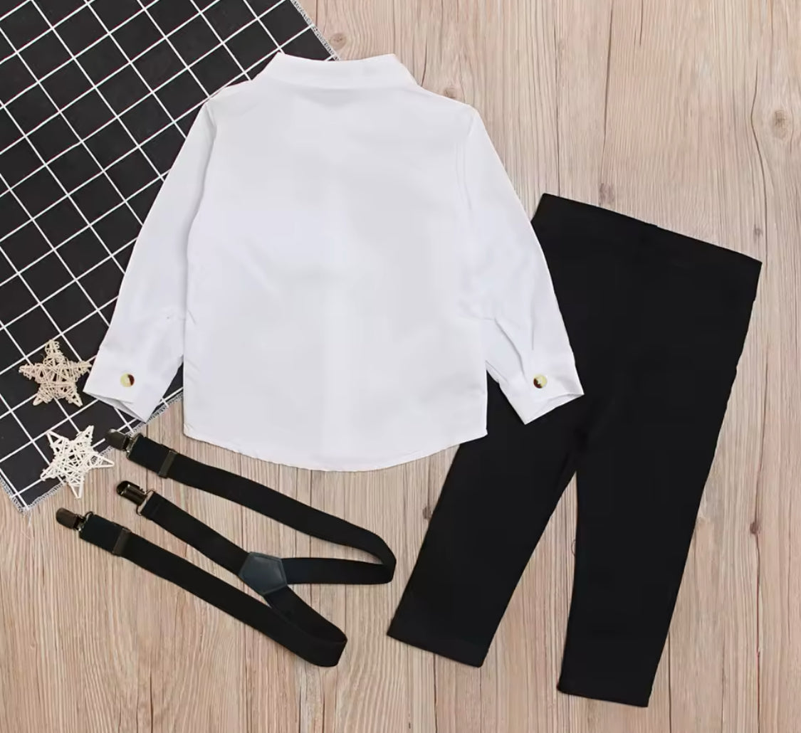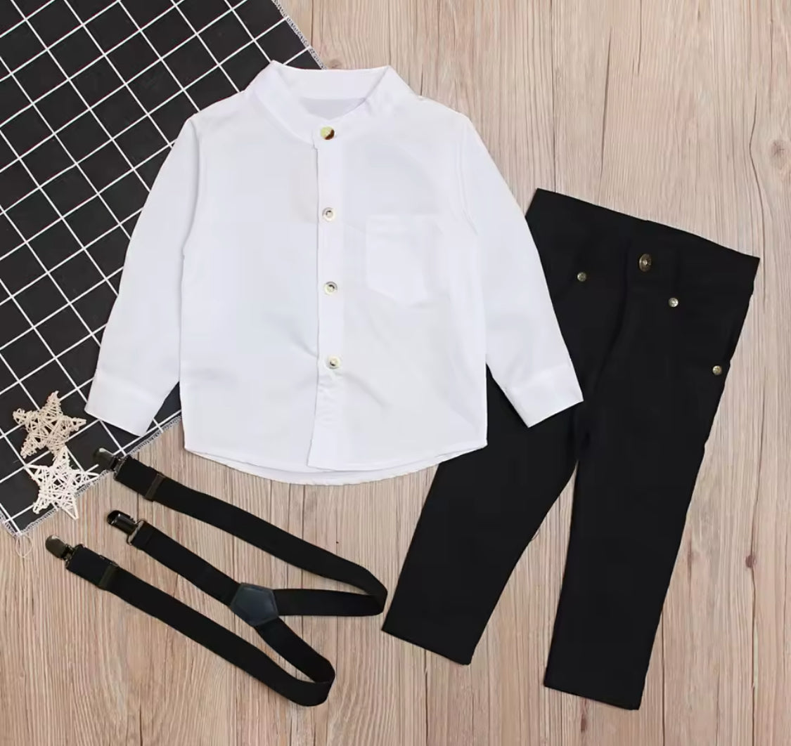 European Style Boys Gentlemenās Suit Set | White Dress Shirt Suspenders & Trousers