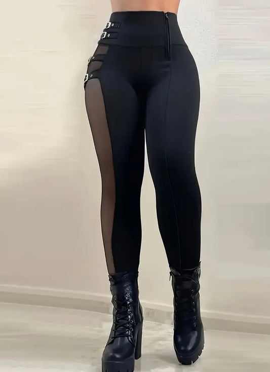 Ultra Flattering Sultry High-Waist Mesh Leggings | Stretchy Fit Zipper Accent Slimming