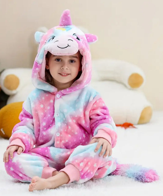 Unicorn Hooded Soft Long Sleeve Button Up Pajamas