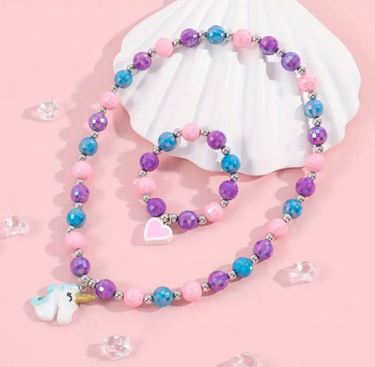Unicorn Colorful Bead Bracelet Necklace Set