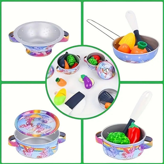 Unicorn Themed, Play Kitchen Accessories With Pans And Pots