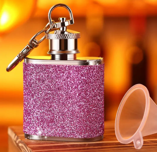1PC, Purple Glitter Portable Stainless Steel Carry-on Flask, 1oz