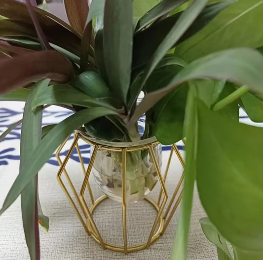 1pc Metal Hydroponic Glass Vase Ornament, Creative Home, Living Room Desktop Decor Flower Vase