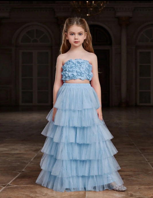 “Sweet Cakes” 🧁 Tween Girl Floral Tube Top And Layered Mesh Skirt