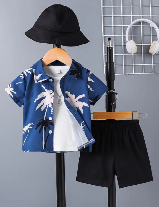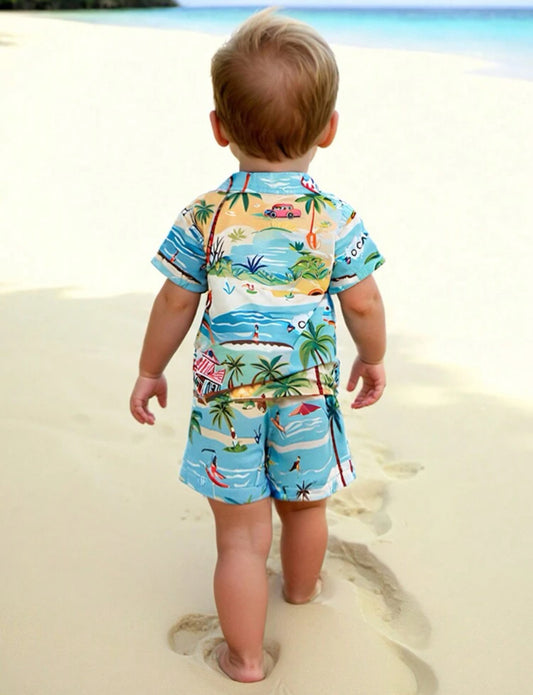 Baby Boys' Casual Coconut Tree Print Short Sleeve Shirt + Shorts Set