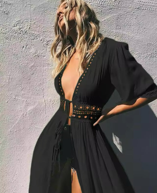 Bell Sleeves ▪️ Lace Slim Fitting Long Beach Cover Up