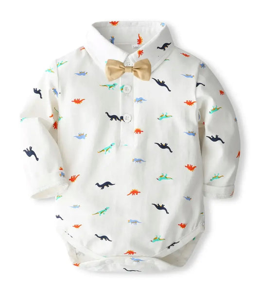 Dino🦕 2pcs Baby Boy's Gentleman Jumpsuit Outfit with Bowtie Shirt and Overalls Set