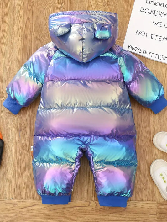 “Baby Bear” 🐻 Holographic Snowsuit, Puffer Coat with Hood and