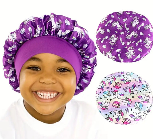2pcs Unicorn Cartoon, Children's Silk Sleep Cap