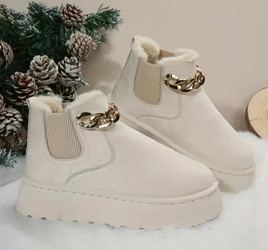 “Snow White” Women's Chain Decor Snow Boots, Warm Lined Non-slip