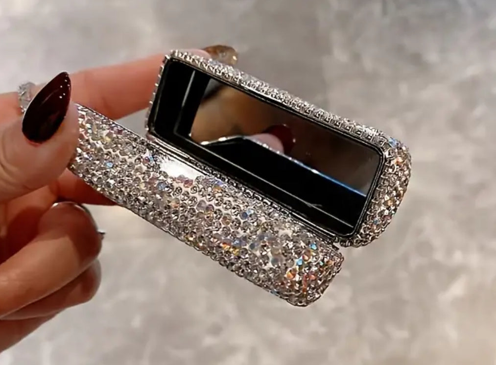 Adorned with shimmering rhinestones and complete with a convenient mirror, this portable holder adds a touch of glamour to any lip gloss or lipstick collection.