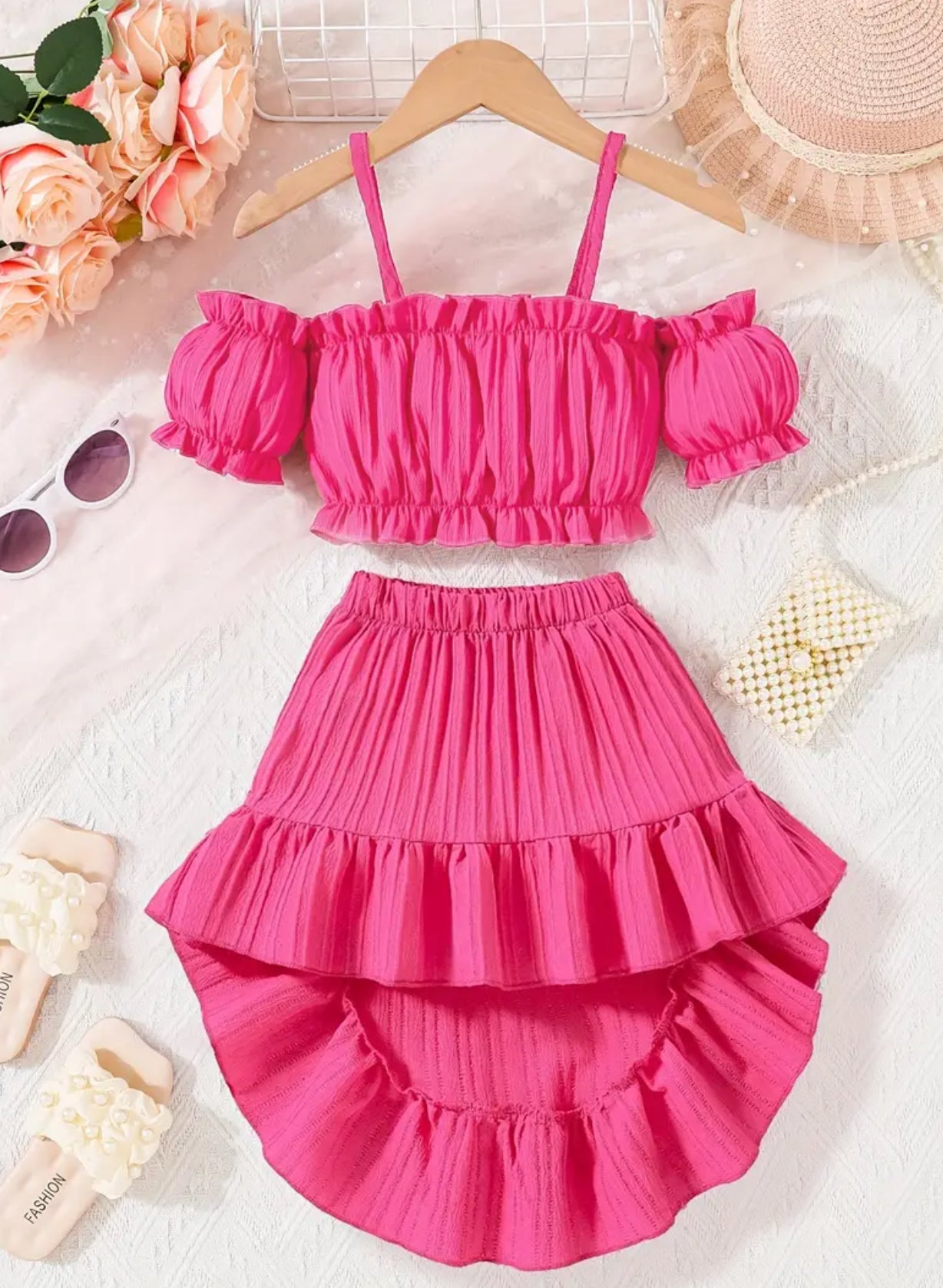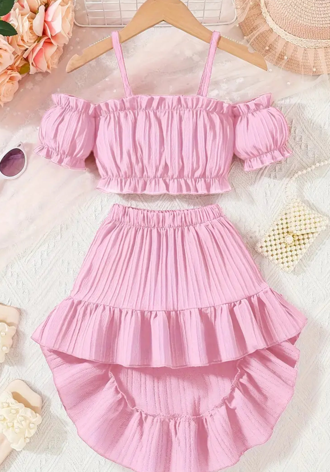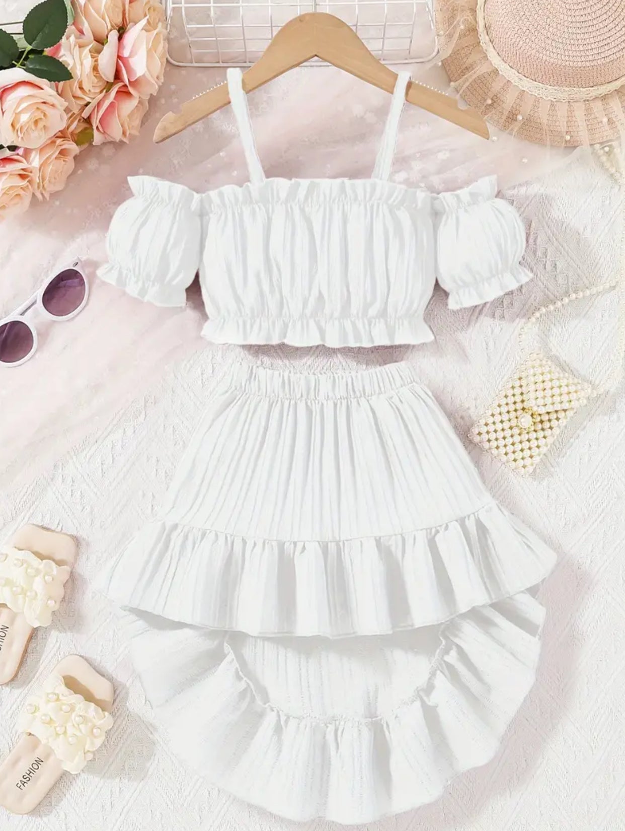“Sweetheart” Off-Shoulder Top and Asymmetrical Skirt Set