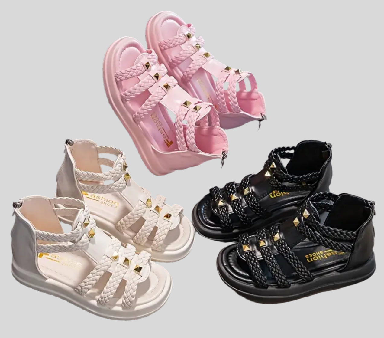 “Braids & Brass” Open Toe Sandals With Zipper, Non-Slip