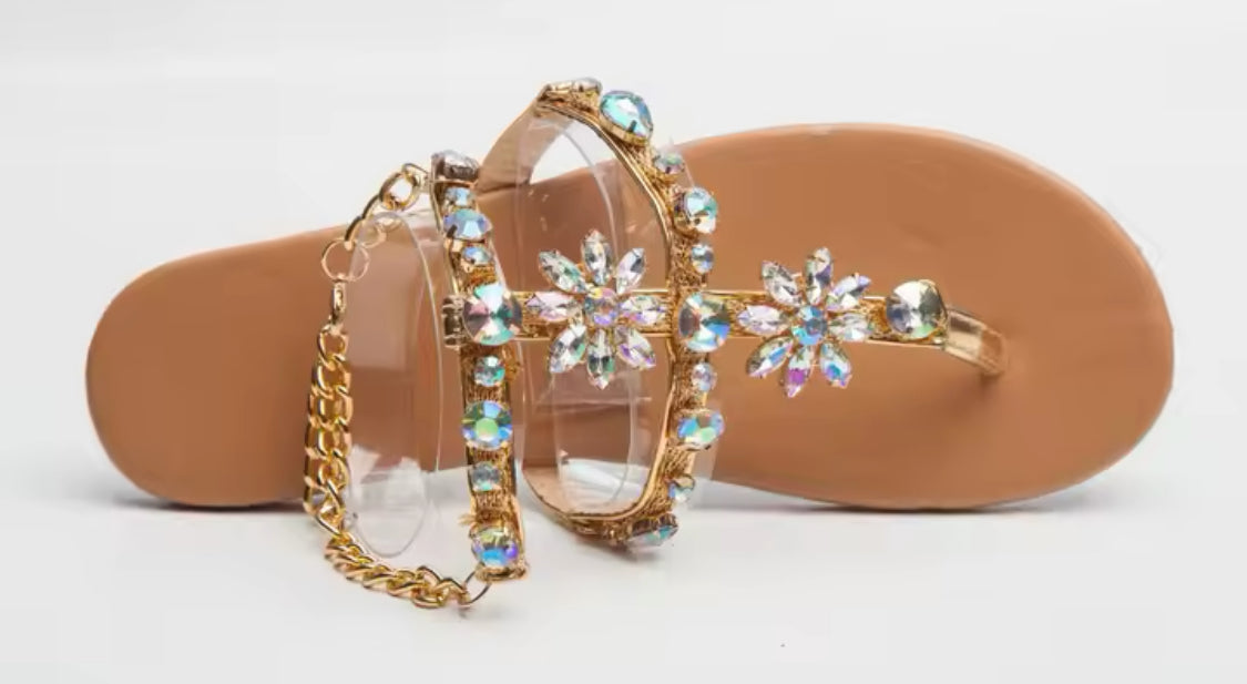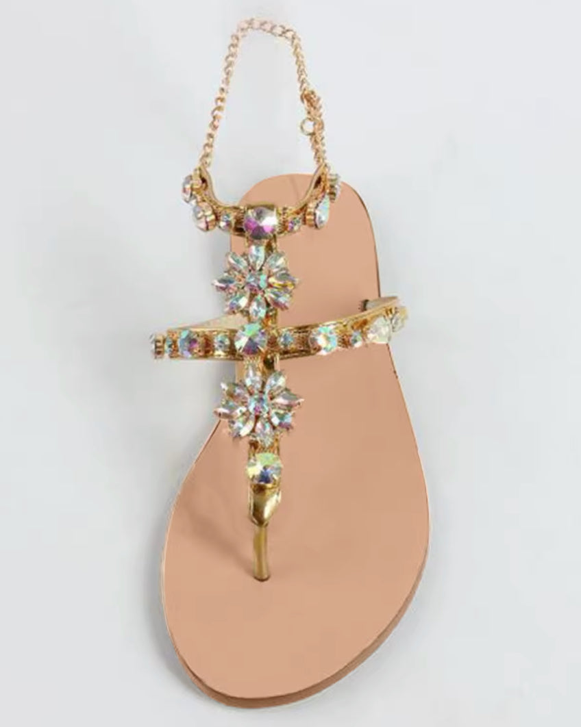‘Bohemian Rhinestone’ Buckle Strap Flat Sandals