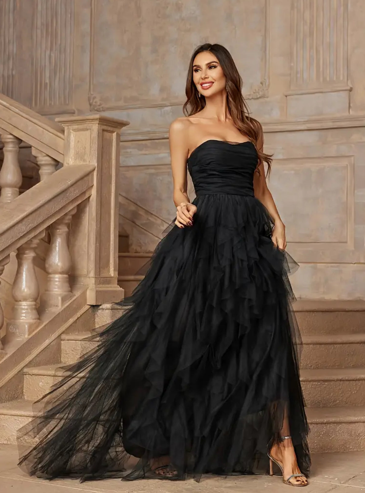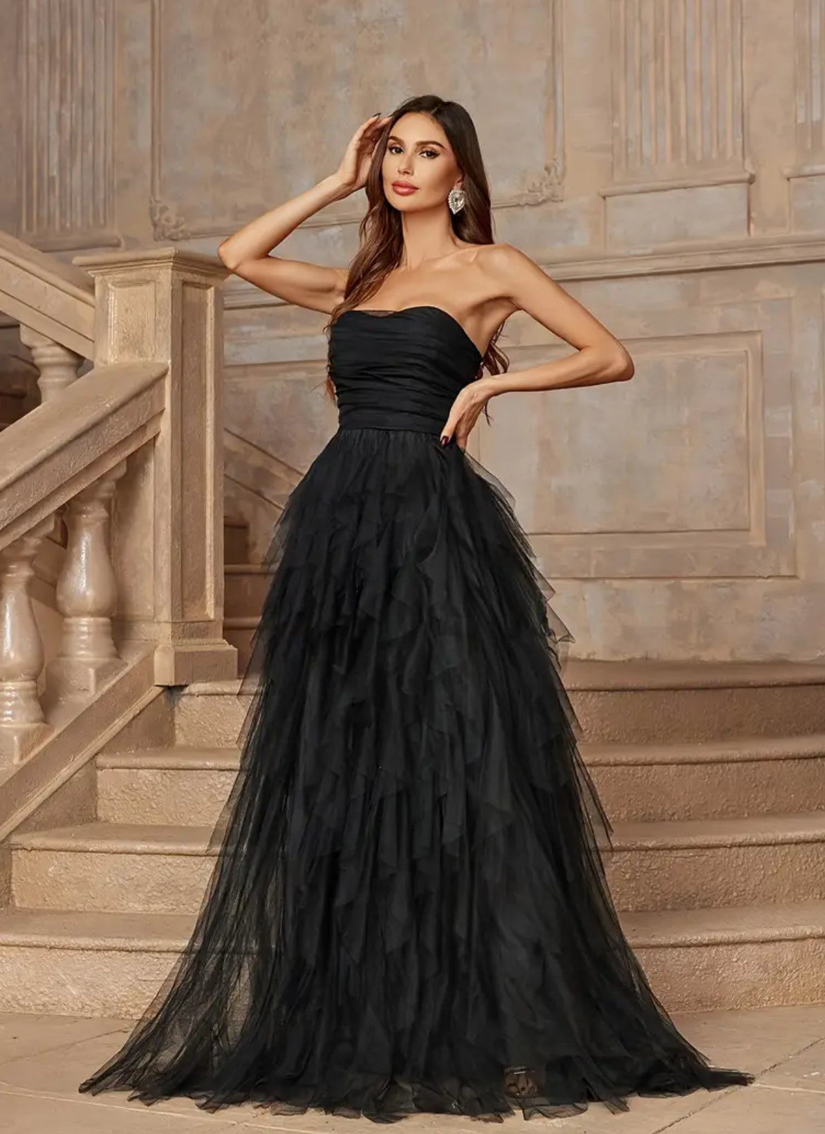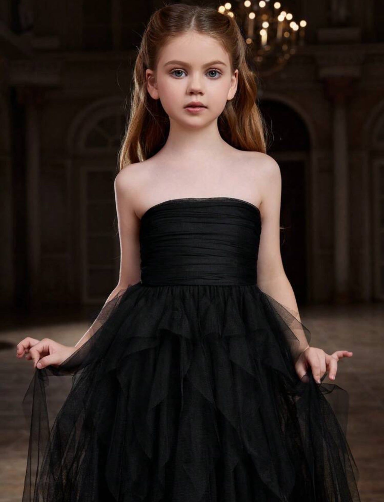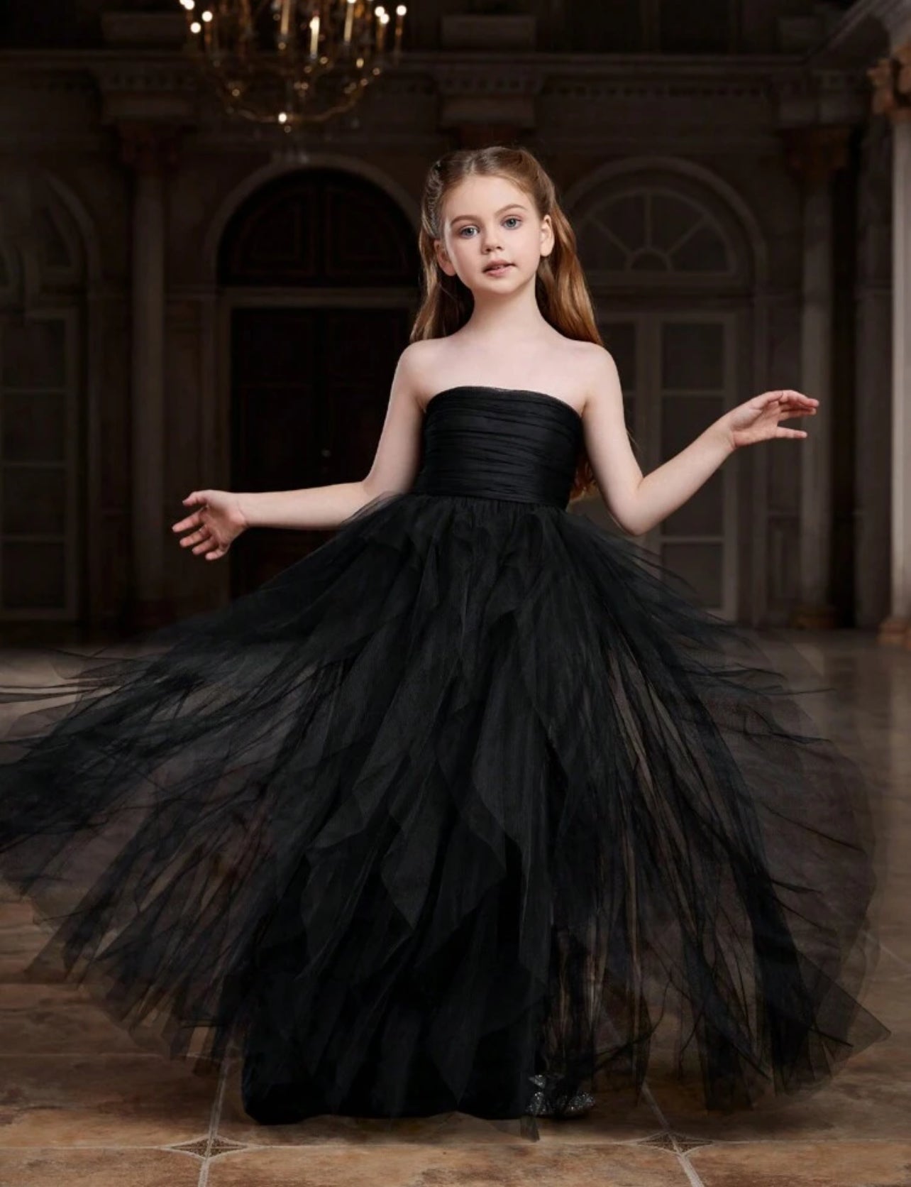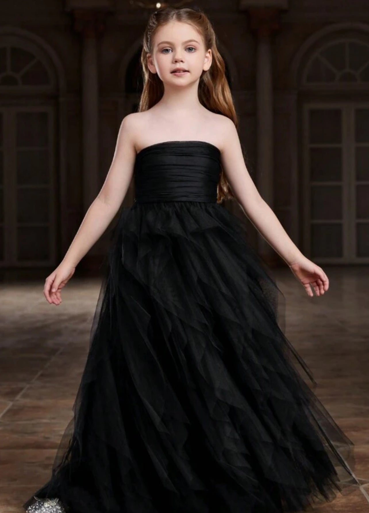 Mommy & Me Luxury "Black Swans" Strapless Design Delicate Layered Flowy Mesh Dress