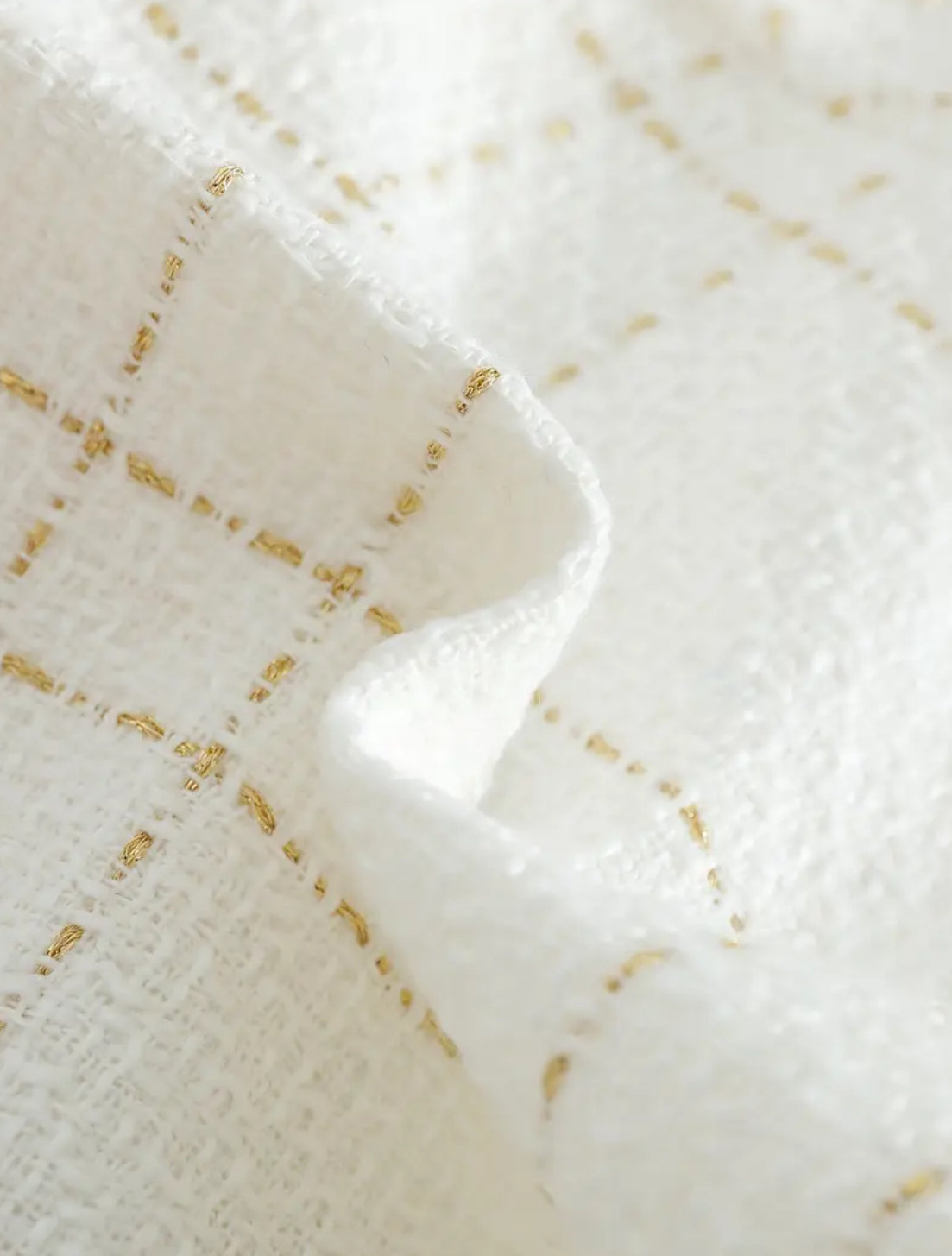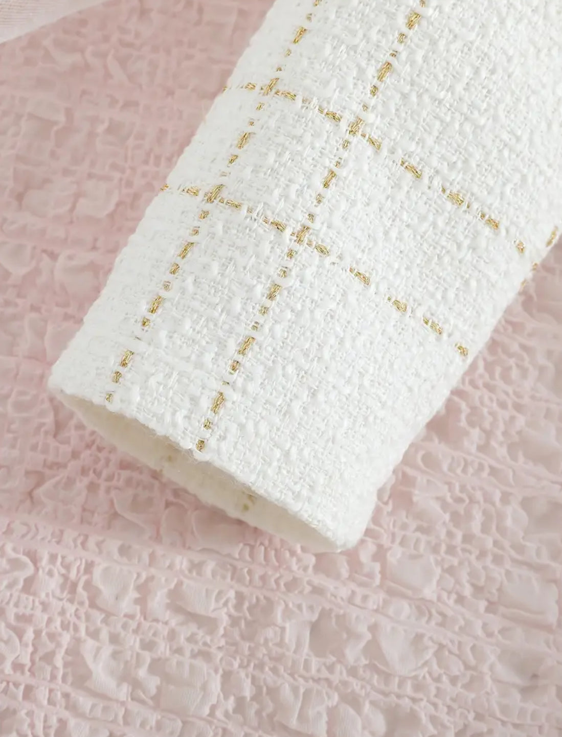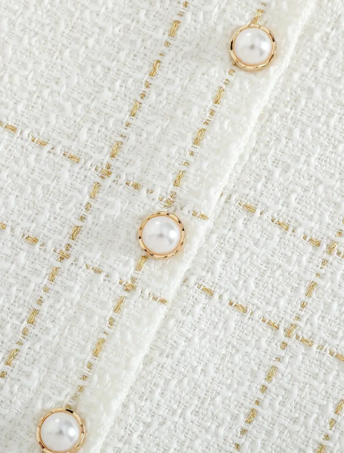 Girls ‘JACKIE O’ Fashion Plaid Two-Piece Set: Pearl Button Collar Long Sleeve Jacket + Vertical Button Suspender Dress