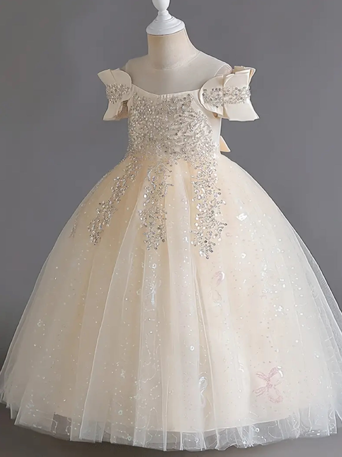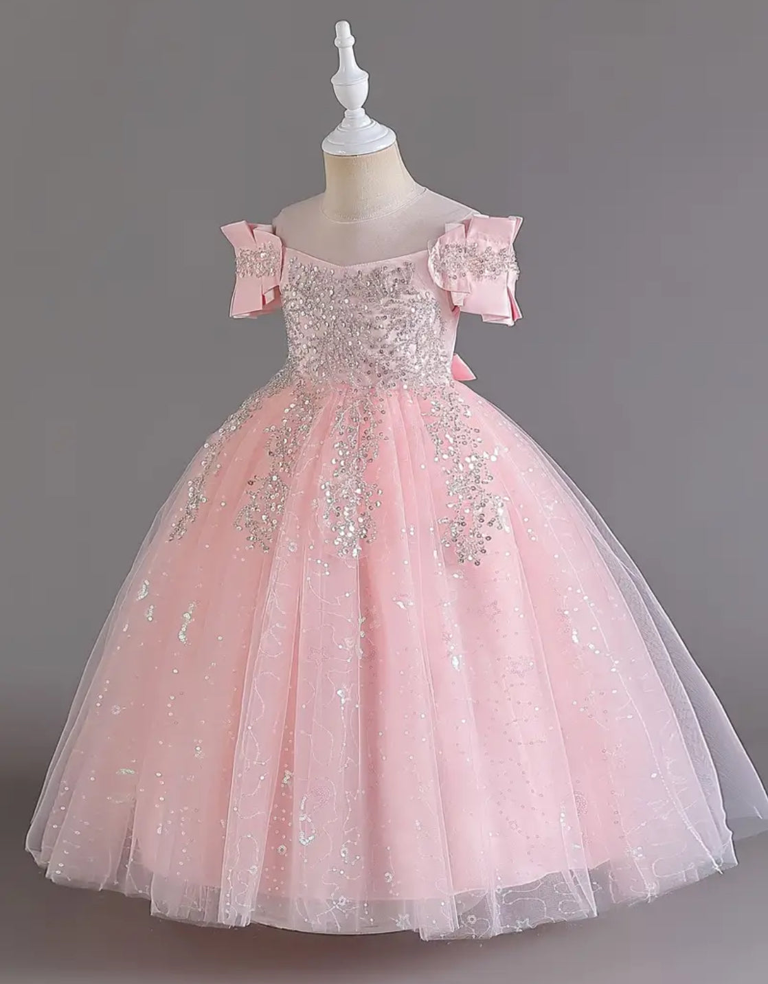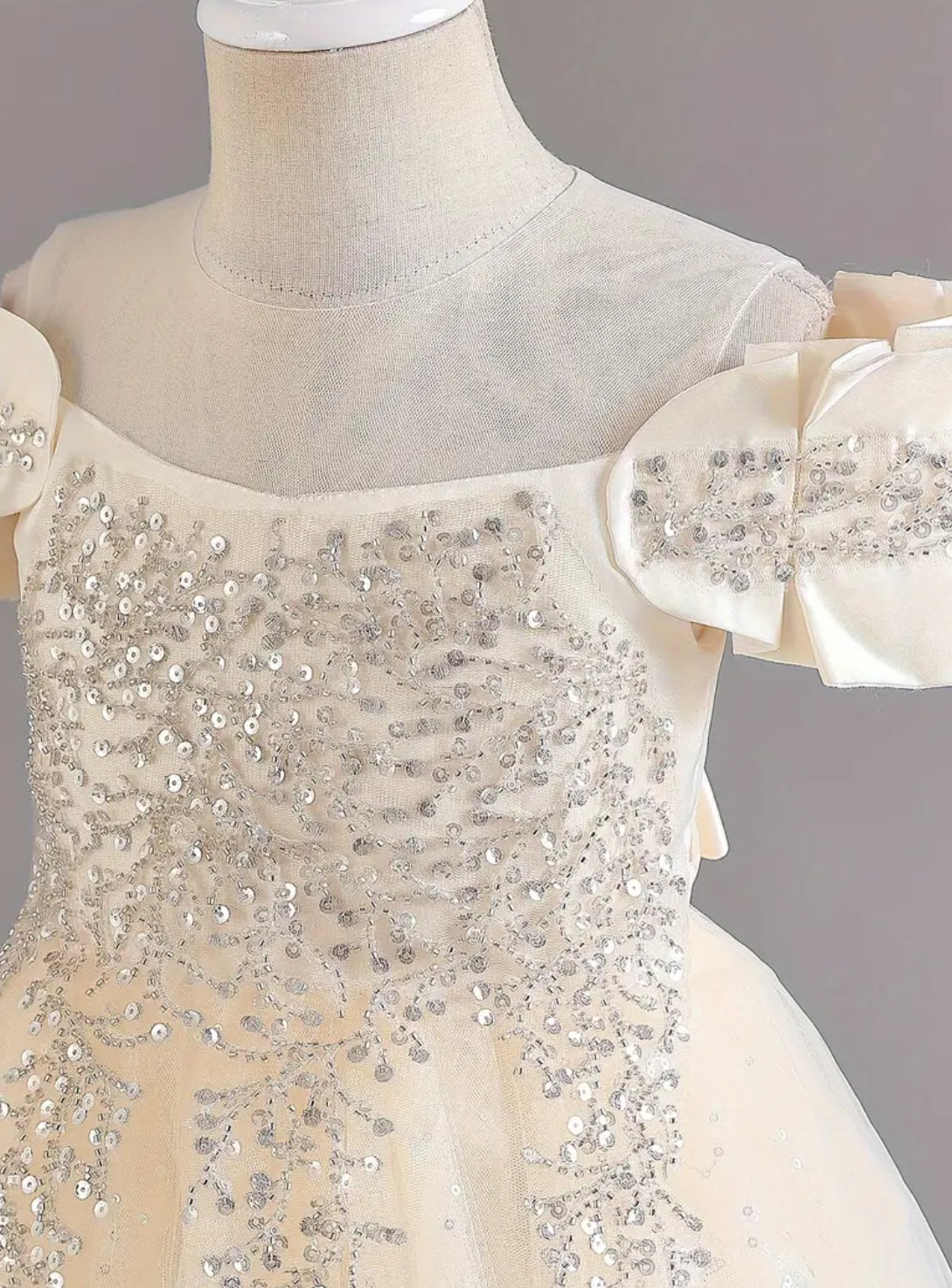Dress your little girl in this luxurious off shoulder sequin mesh tutu dress for her next party or ball.