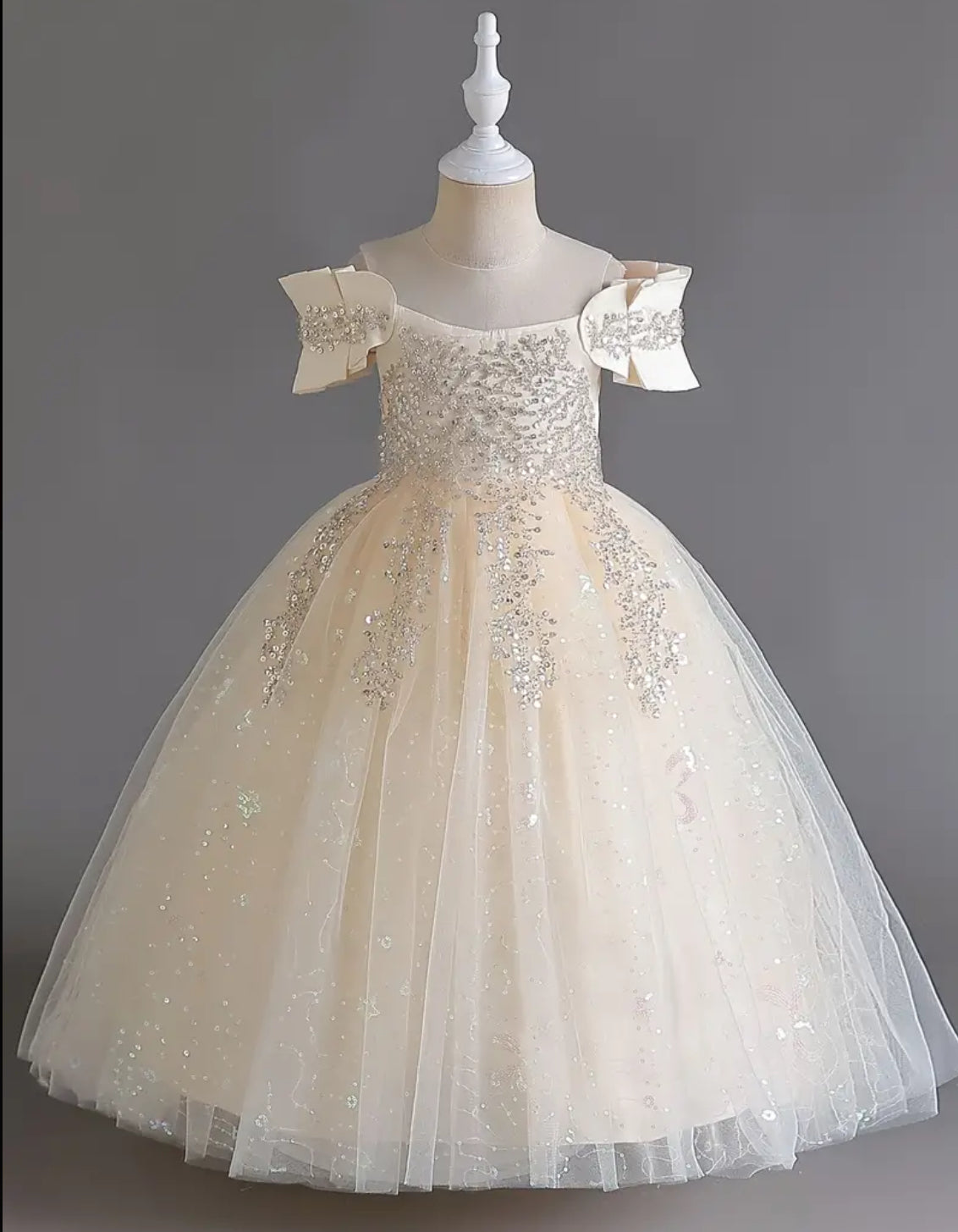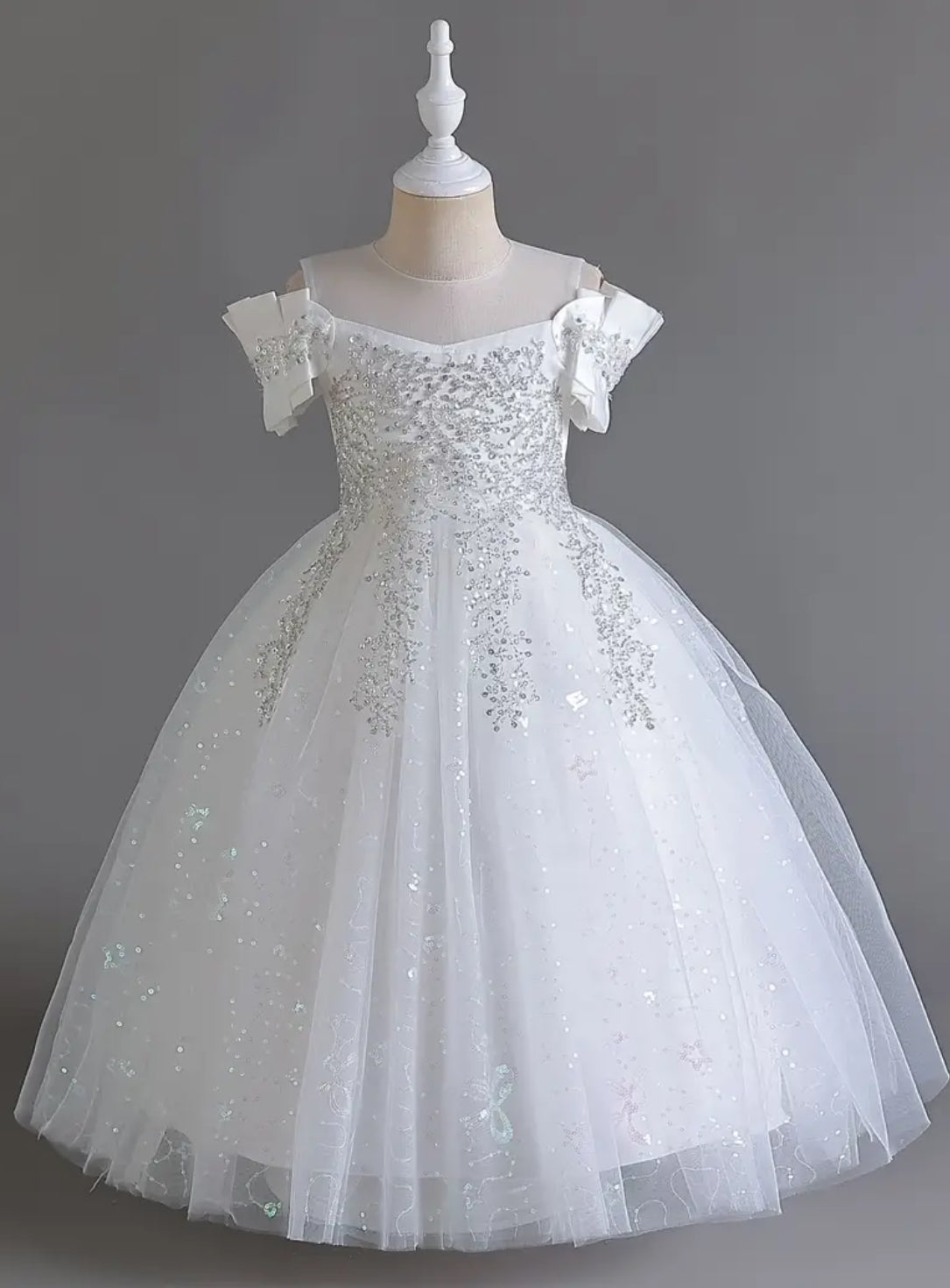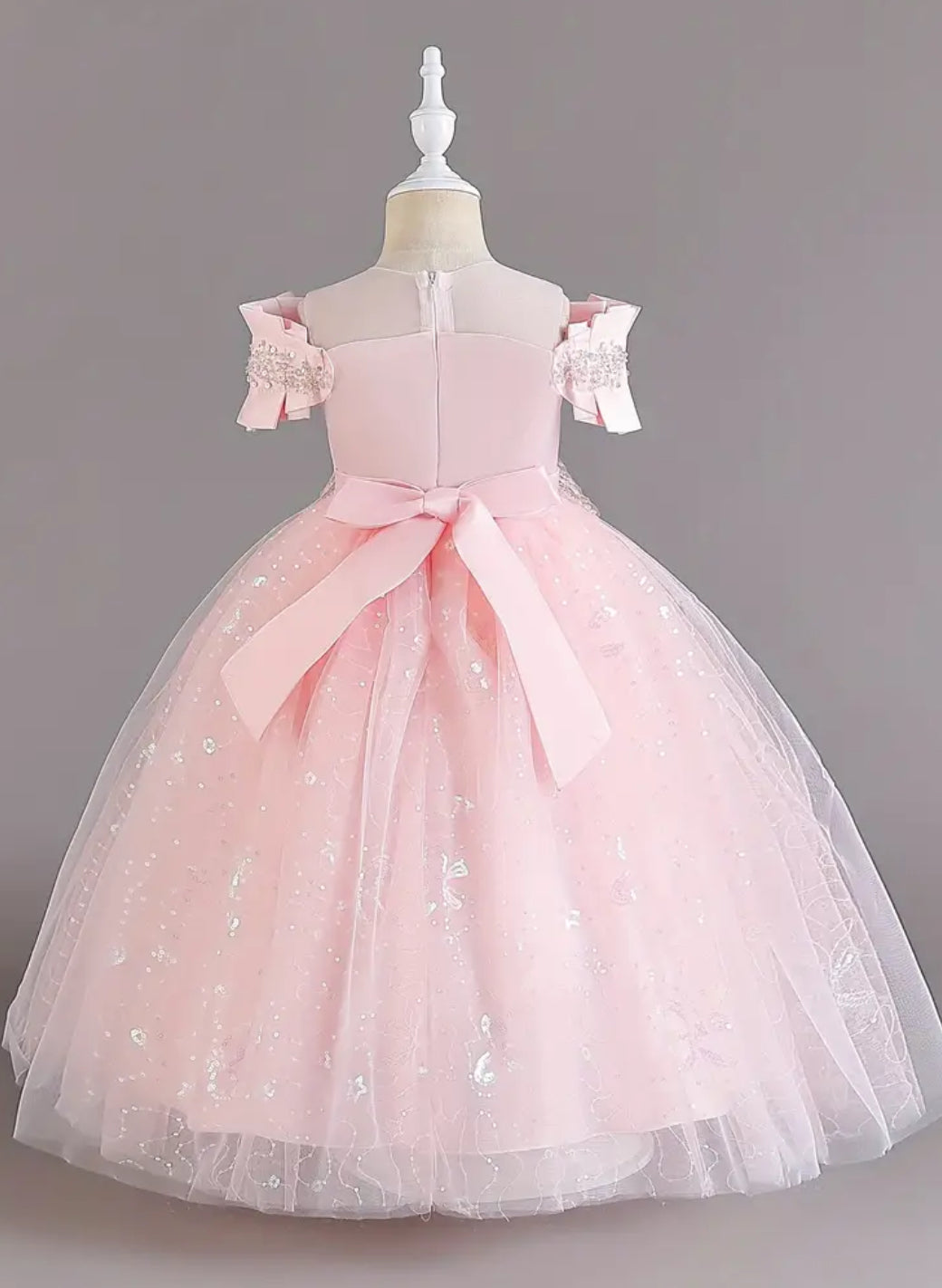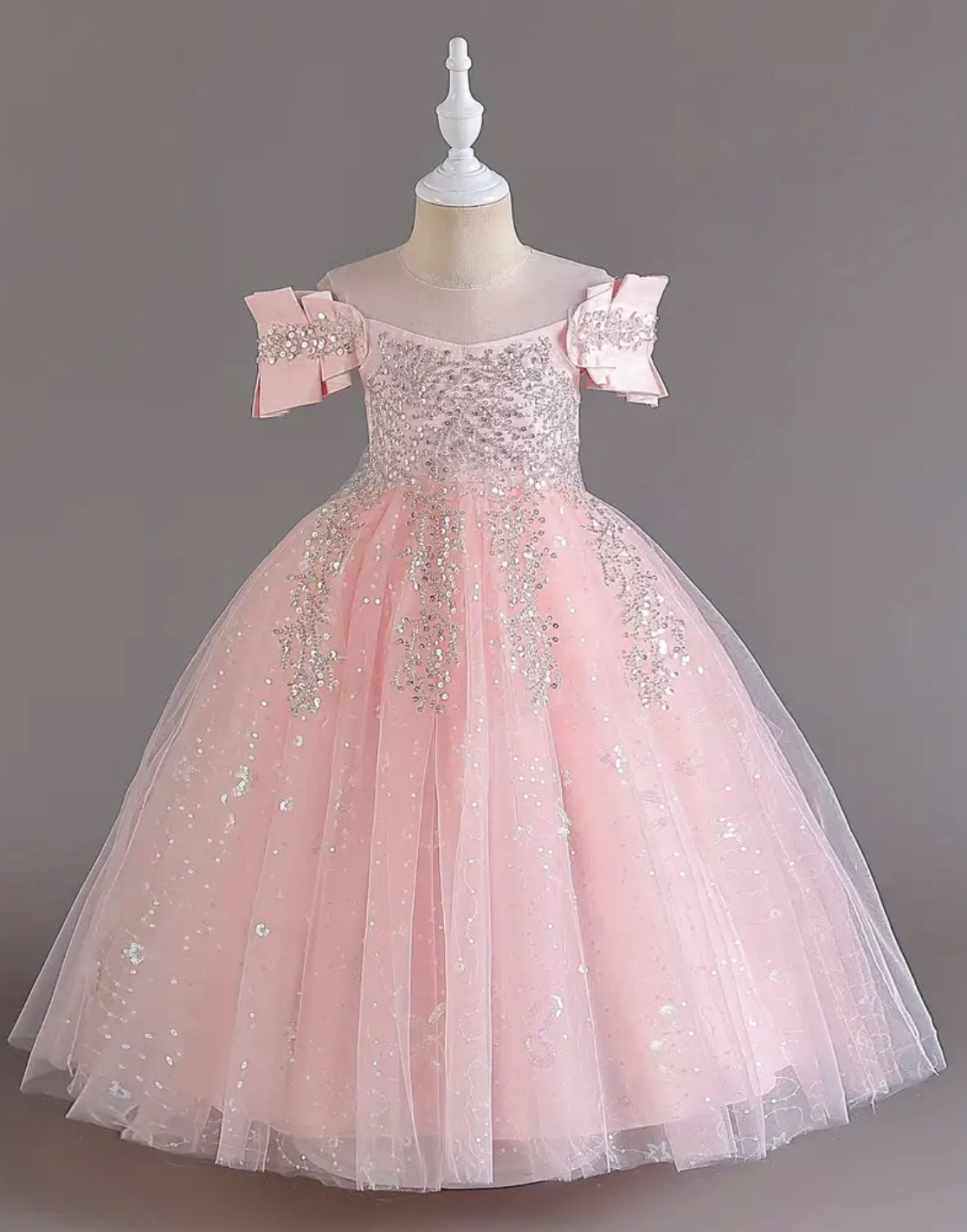 Dress your little girl in this luxurious off shoulder sequin mesh tutu dress for her next party or ball.